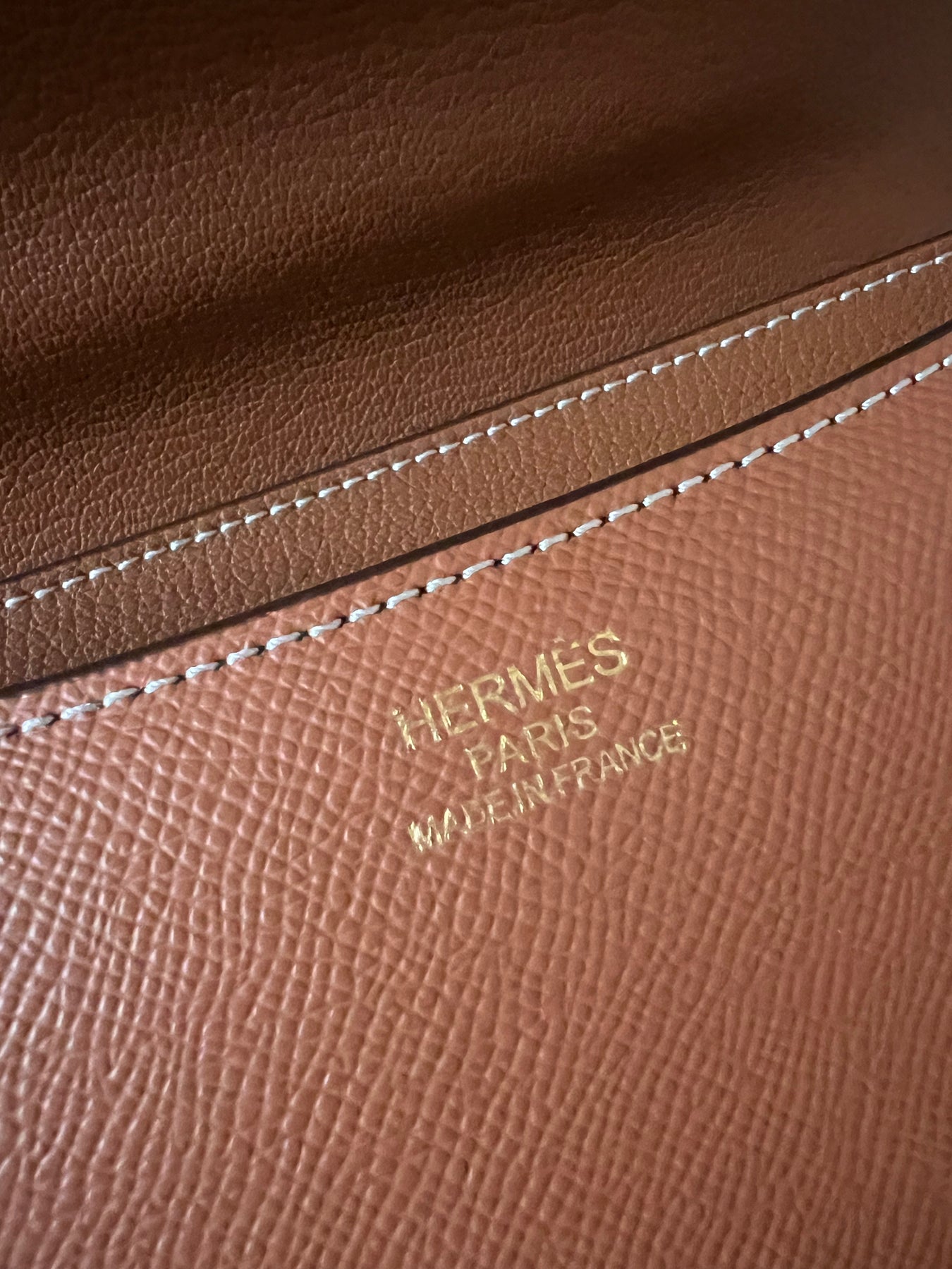 Elevate your everyday look with this stunning crossbody handbag. Crafted in rich saddle brown faux leather with elegant white stitching, this structured shoulder bag features a bold gold “H” hardware closure. The size (9x7”) makes it perfect for essentials—your phone, keys, wallet, and a few extras.
